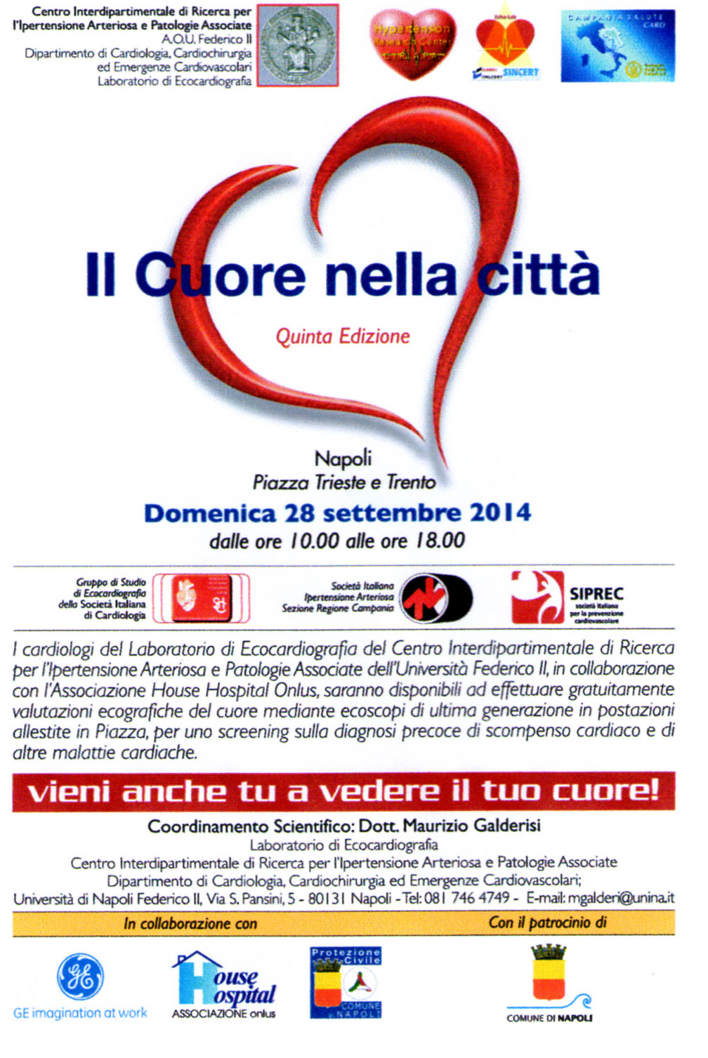 Napoli - Domenica 28 settembre 2014 si terrà a Napoli la quinta edizione dell’iniziativa denominata “Il Cuore nella Città”, una giornata dedicata alla prevenzione e alla diagnosi precoce nell’ambito della cardiologia.