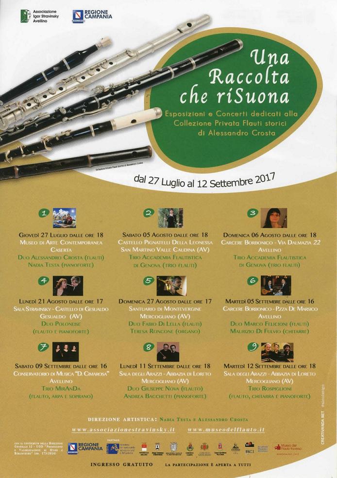 La rassegna comprende anche un’esposizione della collezione privata di flauti storici di Alessandro Crosta, cui è affidata la direzione artistica dell’evento, insieme con Nadia Testa.