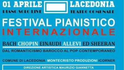 Lacedonia - Sarà davvero un evento unico nel suo genere, quello proposto dal Comune di Lacedonia Domenica 01 Aprile 2018 alle ore 21.00. Un Festival Internazionale prodotto dalla Montecristo Produzioni Artistiche e dalla ICorner con Pianisti provenienti da tutto il Mondo per celebrare la Musica universale in tutte le sue forme. Si proprio quella Musica quale rivelazione più profonda di ogni saggezza che risuonerà nella notte di Pasqua come una grande avventura verso la Luce. E per la prima volta queste terre diventano il punto d’incontro di continenti e talenti.