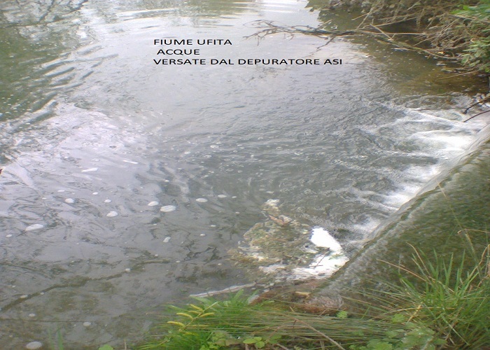 Ieri pomeriggio 12 aprile 2018, camminando lungo gli argini est ed ovest del fiume, abbiamo visto di tutto: plastica, gomme di autocarri, parti di motori e gomme interrate, da chi ha svolto opere di manutenzione fluviale, non sappiamo però da chi commissionate, non essendoci nell’area alcun cartello di segnalazione Lavori. Visionando lo scarico di acque provenienti dal depuratore ASI, (dove nell’impianto c’erano anche dei tecnici forse di manutenzione) abbiamo constatato il versamento nell’alveo del fiume di acque maleodoranti e con in superficie il galleggiamento di prodotti saponati. Per essere più obiettivi, abbiamo effettuato foto a monte dello scarico ASI, costatando acqua limpida, che diventa torbida immediatamente a valle dello scarico.