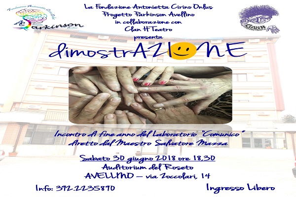 La Fondazione “Antonietta Cirino Onlus – Progetto Parkinson Avellino” ha organizzato per sabato 30 giugno alle ore 18,30, nell’Auditorium-Teatro del Roseto, l’incontro di fine stagione del laboratorio “Comunico”, diretto dal maestro Salvatore Mazza. Un evento pubblico con ingresso libero, a cui ne seguiranno altri nelle prossime settimane, che si pone l’obiettivo di mostrare l’utilità e l’efficacia delle tecniche di comunicazione ed espressione teatrale sul benessere psico-fisico delle persone affette da patologie neurodegenerative.