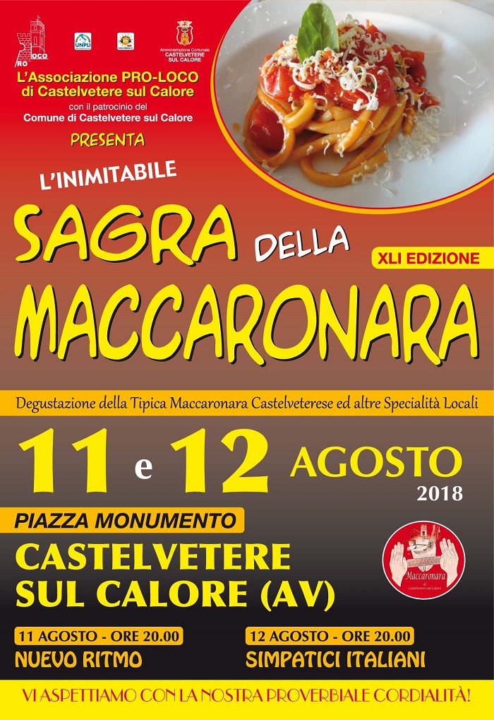 Castelvetere sul Calore – Quarantuno edizioni per la Sagra della Maccaronara di Castelvetere sul Calore (AV), evento organizzato dalla locale Pro Loco e dedicato alla celebrazione dell’eccellente formato di pasta tipico del borgo irpino. L’evento si terrà sabato 11 e domenica 12 agosto e coinvolgerà l’intera cittadina, secondo lo spirito della condivisione dei valori antichi che da sempre caratterizzano questa comunità. Appuntamento fisso dell’estate irpina, la Sagra della Maccaronara, richiama ogni anno appassionati dei sapori tipici della provincia di Avellino, desiderosi di trascorrere indimenticabili momenti in uno degli scenari più suggestivi della verde Irpinia: il borgo di Castelvetere sul Calore, dominato dall’antico castello.