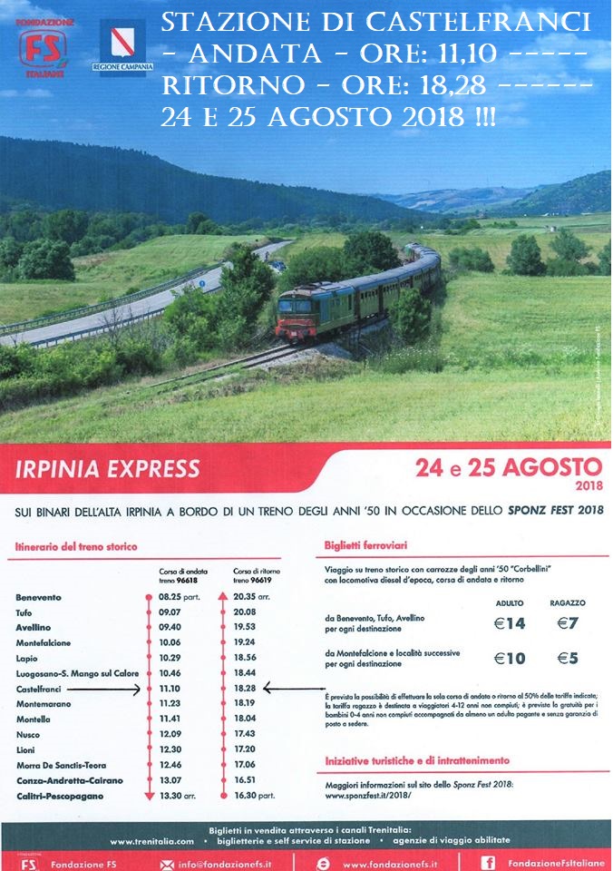 Castelfranci – Festa dell’Aglianico, ritorna il Treno Storico da Benevento a Calitri