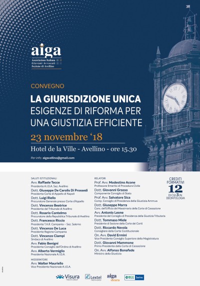 Avellino – Il Ministro della Giustizia Alfonso Bonafede ad Avellino per il convegno organizzato dall’Aiga Avellino su “La giurisdizione unica – esigenze di riforma per una giustizia efficiente”. L’appuntamento è per venerdì 23 novembre alle ore 15.30 presso l’hotel de la Ville. Ad aprire i lavori l’avvocato Raffaele Tecce presidente dell’Aiga sezione Avellino, che ha fortemente spinto per l’iniziativa. Seguiranno i saluti di Giuseppe De Carolis di Prossedi presidente della Corte d’Appello di Napoli, Luigi Riello procuratore generale presso la Corte d’Appello, Vincenzo Beatrice presidente del Tribunale di Avellino, Rosario Cantelmo procuratore della Repubblica presso il Tribunale di Avellino, Francesco Riccio presidente del TAR Campania – sezione di Salerno, Vincenzo De Luca presidente della Regione Campania, Vincenzo Ciampi sindaco di Avellino, Fabio Benigni presidente del Consiglio dell’Ordine di Avellino, Alberto Vermiglio presidente nazionale dell’Aiga.