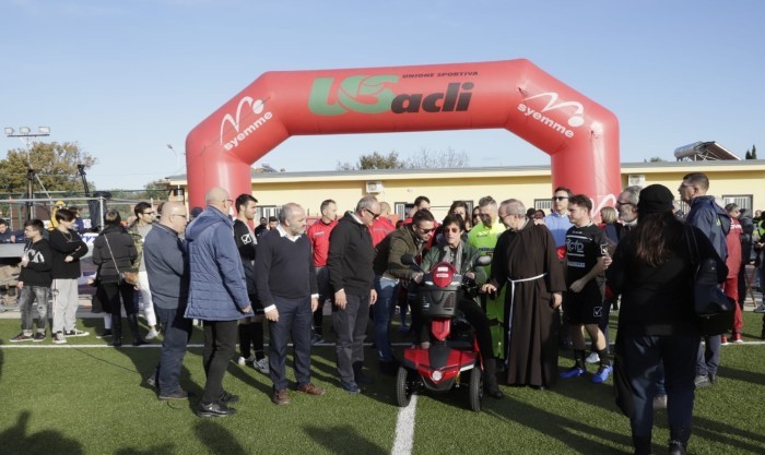 image6Pietrelcina – Circa 4mila tifosi hanno applaudito la Nazionale Cantanti e la Rappresentativa amministratori sanniti che, oggi pomeriggio a Pietrelcina (Benevento), sono scesi in campo per la solidarietà, devolvendo l’intero incasso della partita per l’acquisto di uno scooter elettrico che consentirà alle persone con disabilità di accedere ai luoghi di Padre Pio. Calcio di inizio con Ronn Moss, il famoso “Ridge Forrester” nella soap opera Beautiful – che ha sposato il progetto della Nazionale Cantanti e consegnato lo scooter elettrico alla comunità di Pietrelcina – e con l’inviato di Striscia la Notizia,Jimmi Ghione. Proprio Ronn Moss si trova in Italia per preparare il suo tour mondiale come cantante e presentare il format a Sanremo il 6 febbraio. Per la cronaca, la Nazionale Cantanti, guidata dal presidente Paolo Belli, si è imposta con il risultato di 8-4. Un evento - organizzato da Nazionale Cantanti, USAcli e Comune di Pietrelcina - molto speciale per Rocco Hunt, che ha ricordato la devozione di suo padre per San Pio, Clementino (sua madre è originaria di Apice, in provincia di Benevento), Francesco Da Vinci e Lucariello, autore della colonna sonora della serie Gomorra, impegnati oggi in un vero e proprio derby campano.