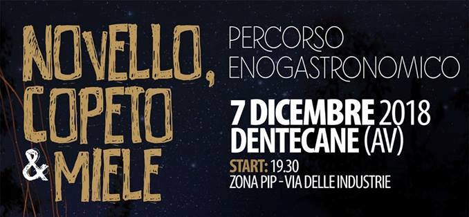 - Venerdi 7 Dicembre dalle ore 19.30, a Dentecane in Irpinia, l’Azienda Vitivinicola Nardone Nardone, l’Apicoltura Artemide e lo storico Torronificio Vincenzo Di Iorio daranno vita ad un inconsueto percorso enogastronomico che si snoderà per tutta la serata fra le tre aziende.