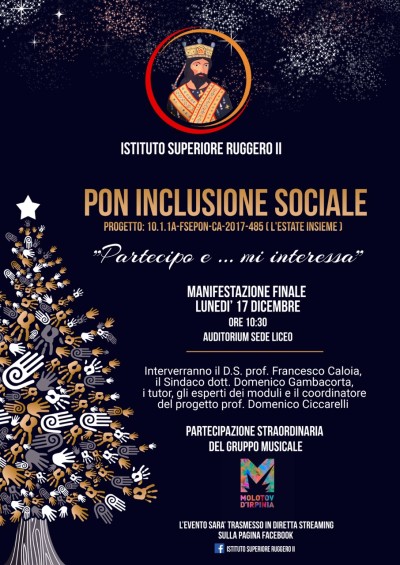 Lunedì mattina presso l’Auditorium del Ruggero II gli studenti, in diretta streaming sulla pagina facebook dell’istituto, presenteranno le attività svolte alla presenza del sindaco di Ariano, Domenico Gambacorta, degli esperti interni ed esterni, dei tutor, del dirigente Francesco Caloia e del coordinatore del progetto Domenico Ciccarelli. L’evento sarà reso speciale dalla partecipazione straordinaria della band “Molotov d’Irpinia”.