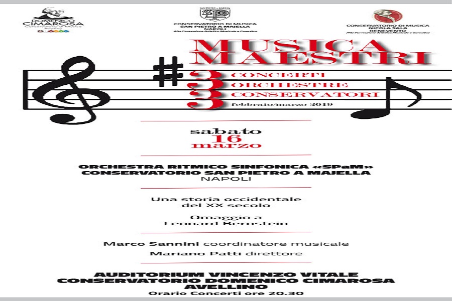 “In quest’ottica abbiamo immaginato di declinare attraverso tre concerti questa rinnovata sinergia che si è condensata in una rassegna dedicata alle Orchestre dei Conservatori di Avellino, Benevento e Napoli che si è sviluppata tra febbraio e marzo e che ha intercettato il favore di un pubblico variegato ed esigente. Uno stimolo in più per proseguire su questo solco anche in futuro“, concludono i due. Il concerto “Una storia occidentale del XX secolo – omaggio a Leonard Bernstein” è ad ingresso gratuito fino ad esaurimento posti a sedere.