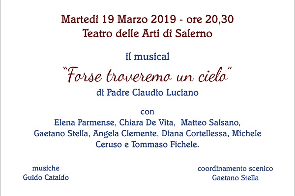 Avrebbe compiuto 80 anni il prossimo 26 aprile, e ci ha lasciati senza poter vedere realizzato, per un soffio, uno dei suoi sogni: persona colta, ottimista e sensibile aveva scritto “Forse troveremo il cielo”, un recital su come l’amore e la fratellanza possano aiutare le persone a superare le esperienze negative e i momenti bui. Lo spettacolo sarà in scena martedì 19 marzo alle ore 20:30 al Teatro delle Arti di Salerno, musicato dal Maestro Guido Cataldo, suo storico amico: un modo per ricordare il prezioso testamento morale e spirituale che ci ha lasciato e per onorare una vita dedicata al prossimo e ai bisognosi.