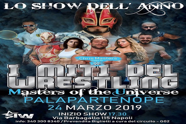 Napoli – Il grande wrestling torna al Palapartenope di Napoli il prossimo 24 marzo:“I Miti del Wrestling: Masters of the Universe” è il titolo dello show più importante dell’anno nel Sud Italia. Ospite d’onore sarà “The Masterpiece” Chris Masters, superstar che nella WWE ha affrontato campioni del calibro di John Cena, The Undertaker, Triple H, Ric Flair. Lo show inizierà alle 17.30 ed al termine dello stesso, grazie l’acquisto di un “vip pass”, sarà possibile incontrare e farsi fotografare con Chris Masters e con gli altri lottatori presenti. I biglietti sono in vendita a prezzi popolari (da 12,50 a 25 euro più prevendita) tramite il circuito Go2.