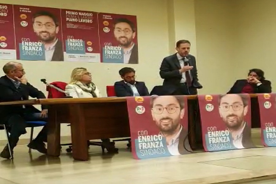 Nella sala convegni del palazzo degli Uffici, Enrico Franza, candidato sindaco del Centrosinistra Unito, ha evidenziato la necessità di ridurre il gap esistente tra fasce sociali, facendo ricorso a nuove politiche che guardino al lavoro, alla promozione delle iniziative da parte dei giovani, sempre più propensi ad abbandonare la propria città, alla incentivazione delle forme consortili per lo sviluppo e la promozione delle risorse agricole ed imprenditoriali presenti sul territorio.