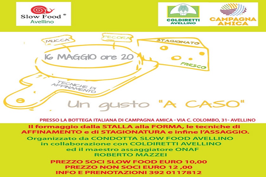 Avellino – Slow Food, degustazione formaggio “Un gusto a Caso”