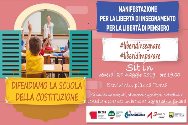 “Aderiamo all’iniziativa nazionale che si terrà venerdì 24 maggio a Palermo #liberidinsegnare#liberidimparare chiamando a raccolta a Benevento, lo stesso 24 maggio, alle ore 19.00, in un Sit in che presso piazza Roma, il mondo della scuola ed i cittadini tutti: la scuola è un bene comune”, si legge nel comunicato.