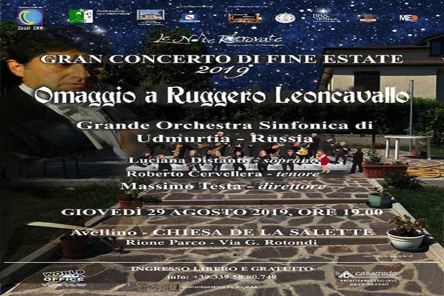 Avellino – L’associazione Zenit 2000 di Avellino, presieduta dal M° Massimo Testa, è lieta di comunicare che giovedì 29 agosto 2019 alle ore 19.00 si terrà presso la Chiesa Madonna De La Salette di Rione Parco via Rotondi in Avellino il Gran Concerto di Fine Estate 2019, grazie al consueto contributo oculato e attento alle esigenze artistiche della Comunità di Don Emilio Carbone.