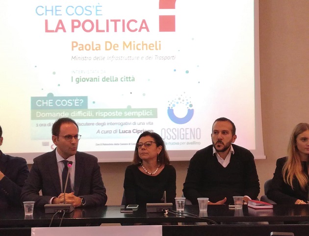 Avellino – Nel pomeriggio di ieri 29 novembre, il Ministro delle Infrastrutture e dei Trasporti Paola De Micheli è stata ospite dell’Associazione Ossigeno per un confronto con undici giovani avellinesi che si è svolto presso la Sala Convegni della Camera di Commercio di Avellino in Piazza Duomo.