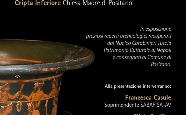 La Soprintendenza ABAP di Salerno e Avellino comunica che mercoledì 28 luglio 2021, alle ore 17.30, sarà inaugurata all’interno della Cripta inferiore della Chiesa Madre di Positano una mostra espositiva con l’allestimento di due preziosi reperti archeologici trafugati e strappati al mercato clandestino.
