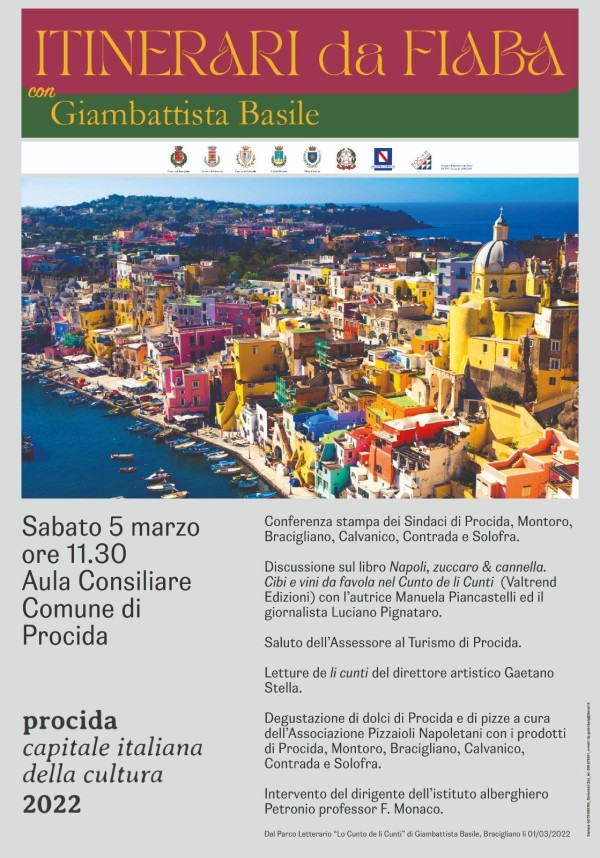Il progetto intende promuovere i sapori ed i saperi, la storia dei luoghi, il patrimonio naturalistico ed agricolo locale attraverso le fiabe scritte da Giambattista Basile e si propone l’obiettivo di modernizzare l’offerta turistico – culturale locale ed orientare i flussi turistici verso le aree interne, anche grazie a Procida Capitale italiana della Cultura 2022.