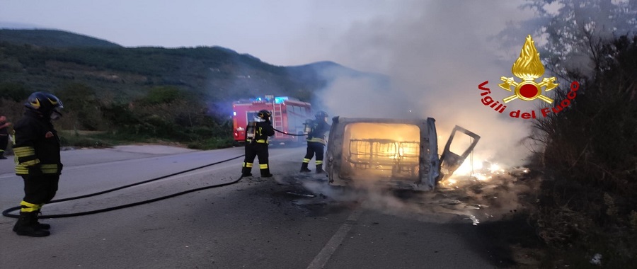 Mugnano del Cardinale (Av) – I Vigili del Fuoco di Avellino subito dopo le ore 19’00 di oggi 8 settembre, sono intervenuti nel territorio del comune di Mugnano del Cardinale, subito dopo l’uscita del casello autostradale di Baiano, per un incendio che ha interessato un pulmino in transito con a bordo sei persone, le quali una volta che si sono accorti della fuoriuscita di fumo e fiamme dal vano motore, hanno fatto appena in tempo a mettersi in salvo.