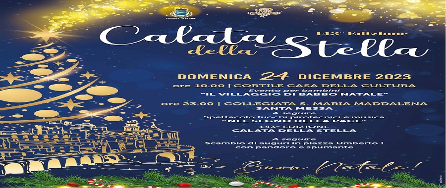 Le mille luci colorate che accarezzano le case arroccate l’una sull’altra all’improvviso si spengono, mentre un brusio di voci inizia a scandire l’attesa. Poi, accompagnata dalla musica, una cometa di bengala inizia ad accendersi e a scivolare lentamente su un cavo d’acciaio, illuminando il borgo. Pochi ma essenziali gli ingredienti che fanno della Calata della Stella un momento di condivisione e suggestione senza eguali in tutta la Costiera Amalfitana. Un appuntamento con la tradizione, nella notte più magica dell’anno, capace di fondere folklore, identità, memoria, spiritualità e introspezione in un suggestivo mix che non smette mai di stregare.